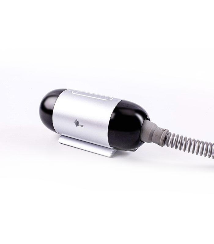 El AutoCPAP Mini es un equipo médico pequeño, con un peso de menos de 400 gramos, que cuenta con la tecnología más avanzada de BMC Medical hasta la fecha. Este equipo presenta un diseño moderno y minimalista, totalmente ideado para satisfacer las necesidades de terapia en viajes.