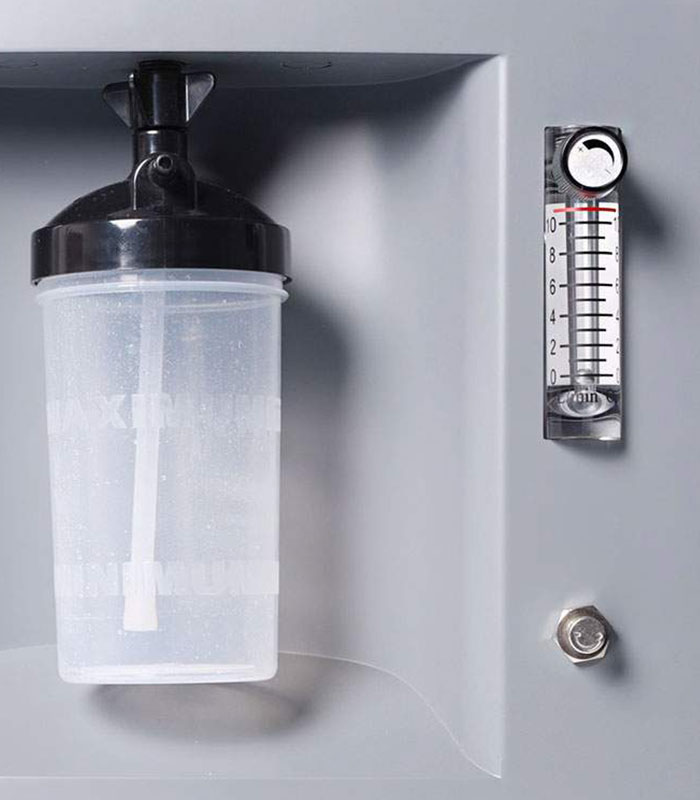 Concentrador de oxígeno que provee una salida de 10 l/m, es un equipo silencioso y está fabricado con componentes de alta calidad.