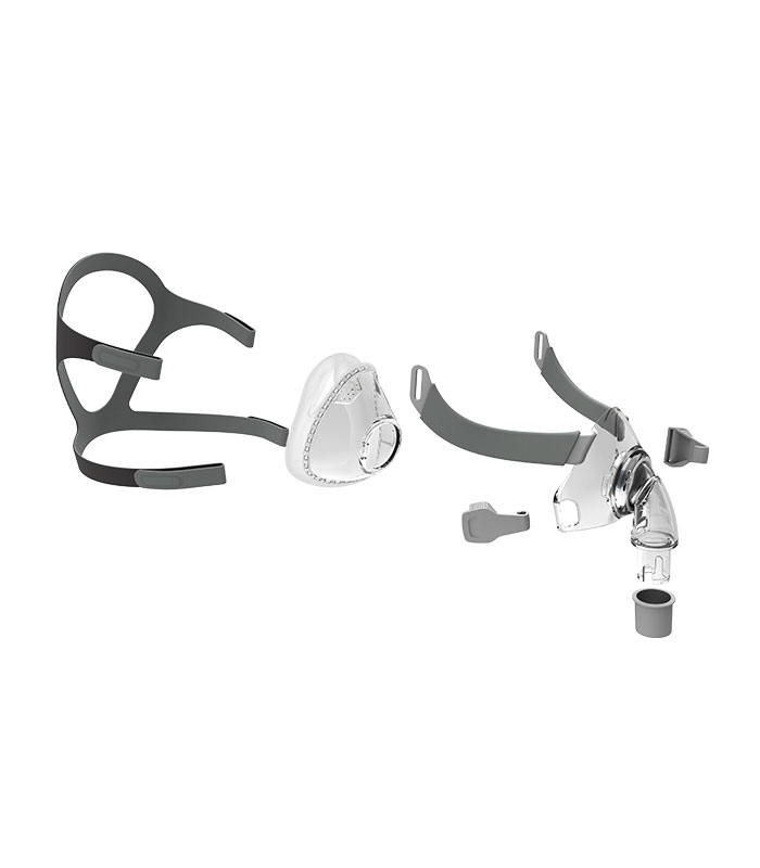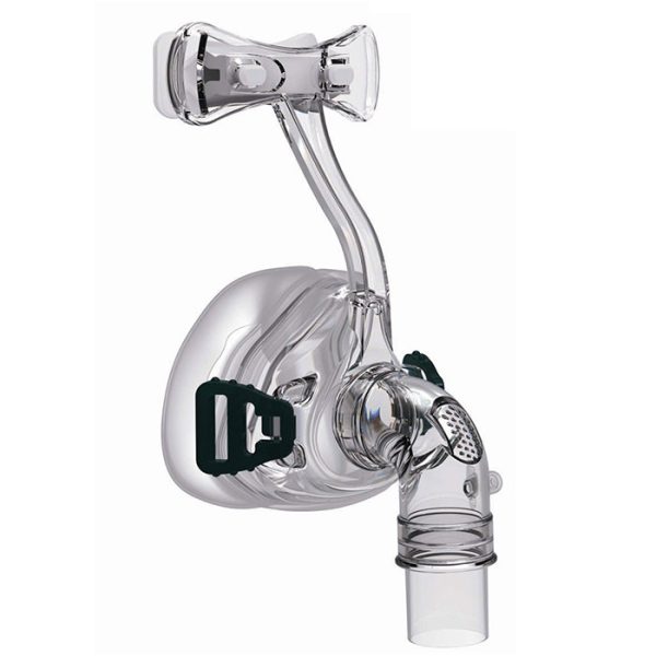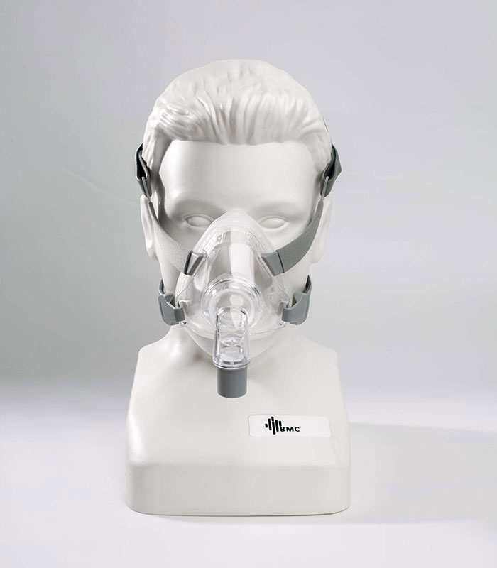 La máscara de mínimo contacto F5A Full Face de BMC es cómoda y flexible. Ha sido diseñada para otorgar una libertad en el campo visual, al no contar con apoyo frontal. Su innovador arnés con broches de fácil desmontaje, maximiza la vida útil de la máscara.