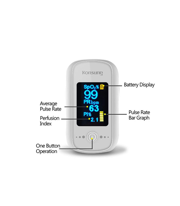 - Parámetros: SpO2+ PR + PI, Frecuencia de pulso en gráfico de barras y de ondas.